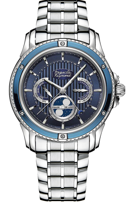 Auguste Reymond Magellan Lunar – стильные швейцарские часы с культовым орбитальным индикатором лунных фаз ORBITAL MOON, выделяющим бренд среди конкурентов. Модель сочетает современный дизайн с высокотехнологичным механизмом, включая автоматический калибр и удобочитаемый циферблат. Сапфировое стекло, качественная отделка и фирменный логотип "AR" подчёркивают премиальность этих часов.