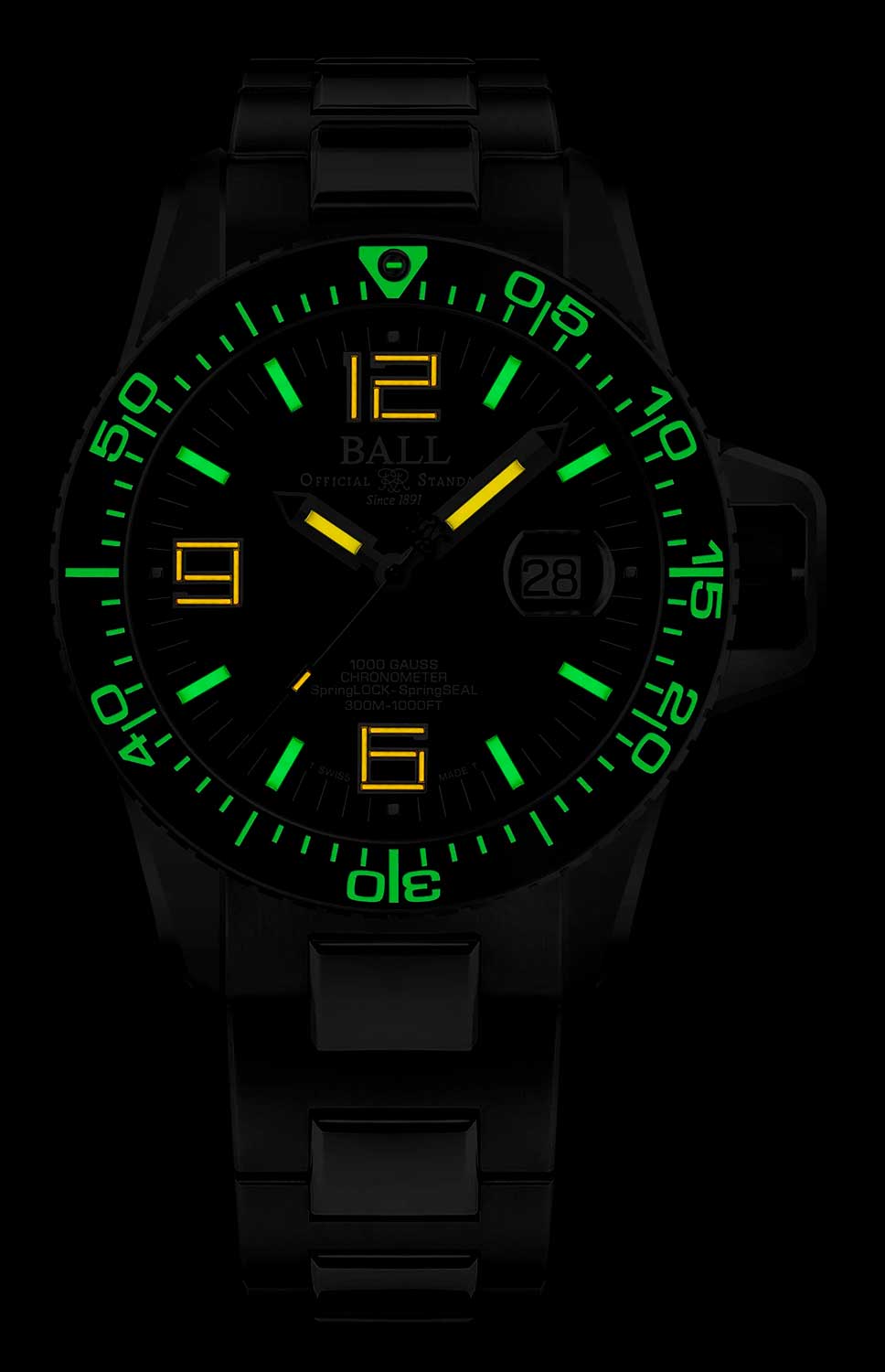 Часы Ball Engineer Hydrocarbon EOD с референсом DM3200A-S2C-BK — это высокофункциональный и сверхпрочный хронометр с сертификатом COSC, разработанный для нужд подразделений по обезвреживанию взрывоопасных предметов. Эта модель в титановом корпусе диаметром 42 мм обладает впечатляющей водозащитой в 300 метров и антимагнитной защитой до 80 000 А/м. Отличительными особенностями являются запатентованные противоударные системы SpringLOCK® и SpringSEAL®, позволяющие выдерживать удары до 50 000 Gs, а также 28 микрогазовых трубок с тритием для постоянной подсветки циферблата и безеля.