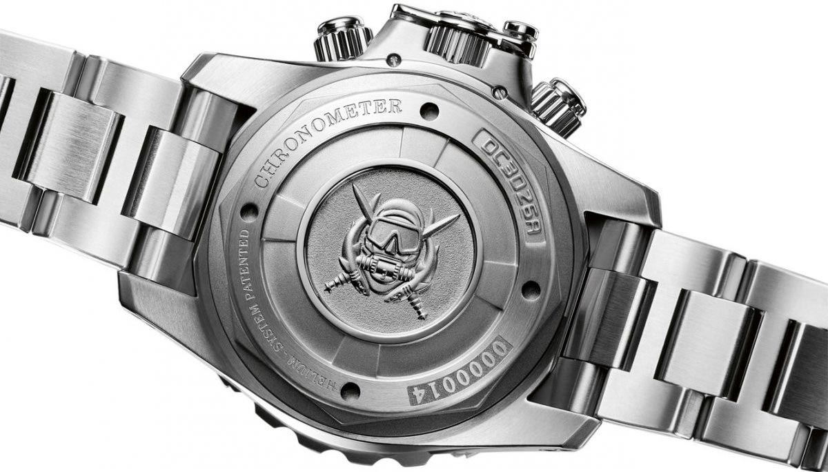 Задняя крышка украшена рельефным изображением водолаза. Впечатляющие 600 метров (60 ATM), что поддерживается завинчивающейся заводной головкой, запатентованной системой защиты заводной головки и встроенным клапаном для выпуска гелия. Однонаправленный вращающийся керамический безель с люминесцентной шкалой Super-LumiNova. Комбинированный титановый/стальной браслет с запатентованной тройной раскладывающейся застежкой, способной выдерживать усилие до 1400 ньютонов. Противоударная система Amortiser® и SpringLOCK®, обеспечивающая устойчивость к ударам силой до 7 500 Gs для защиты механизма.