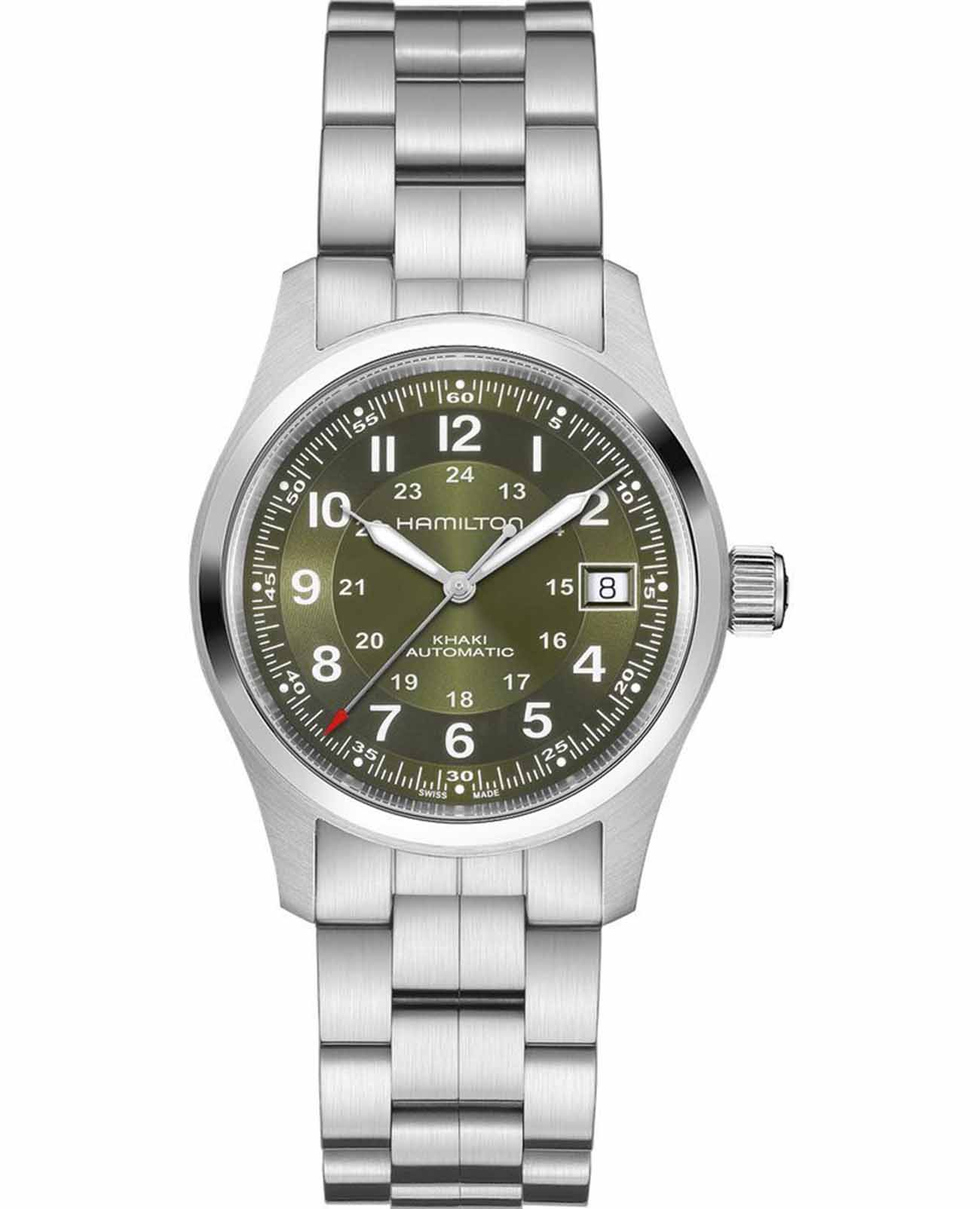 Вдохновленные оригинальными солдатскими часами, часы Khaki Field Automatic сочетают в себе военное наследие и современный дизайн, предлагая универсальность для современных первопроходцев. Циферблат цвета хаки с эффектом «солнечных лучей» и узором «улитка» на часовом кольце отражает свет, демонстрируя текстуру и глубину. Созданный для активной жизни и приключений, эксклюзивный автоматический калибр H-10 обеспечивает запас хода до 80 часов, гарантируя, что часы вас не подведут. Откройте для себя нашу коллекцию Khaki Field.