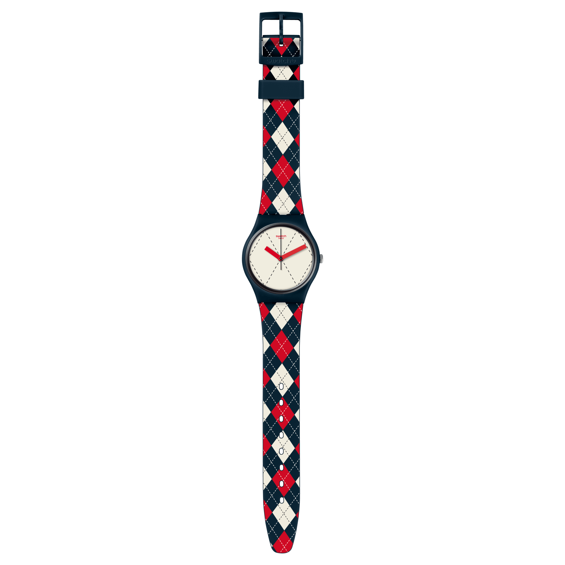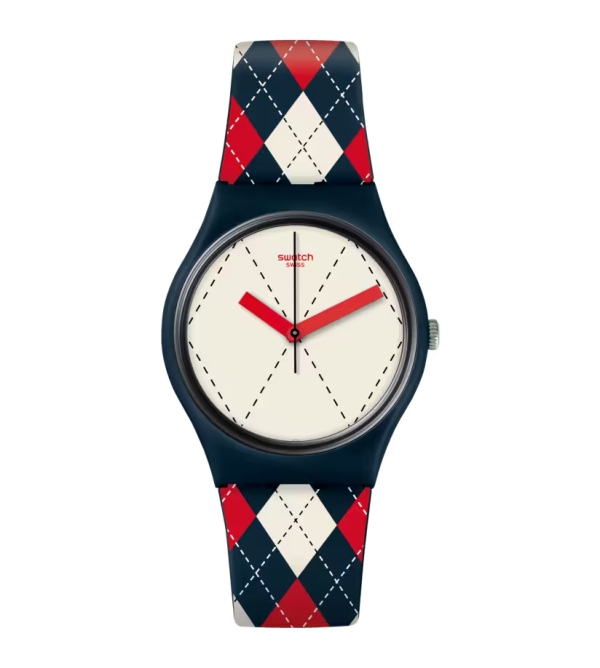 SOCQUETTE (GN255) поразит вас смелым узором из красных и синих ромбов и бежевым циферблатом. Вы будете выглядеть великолепно от запястий до пальцев ног.