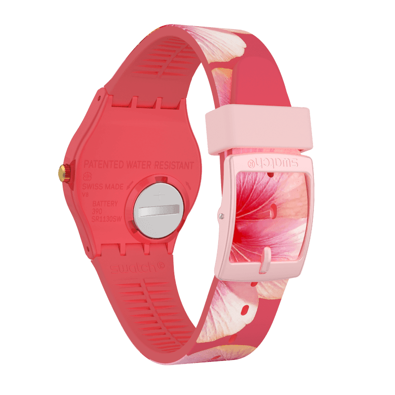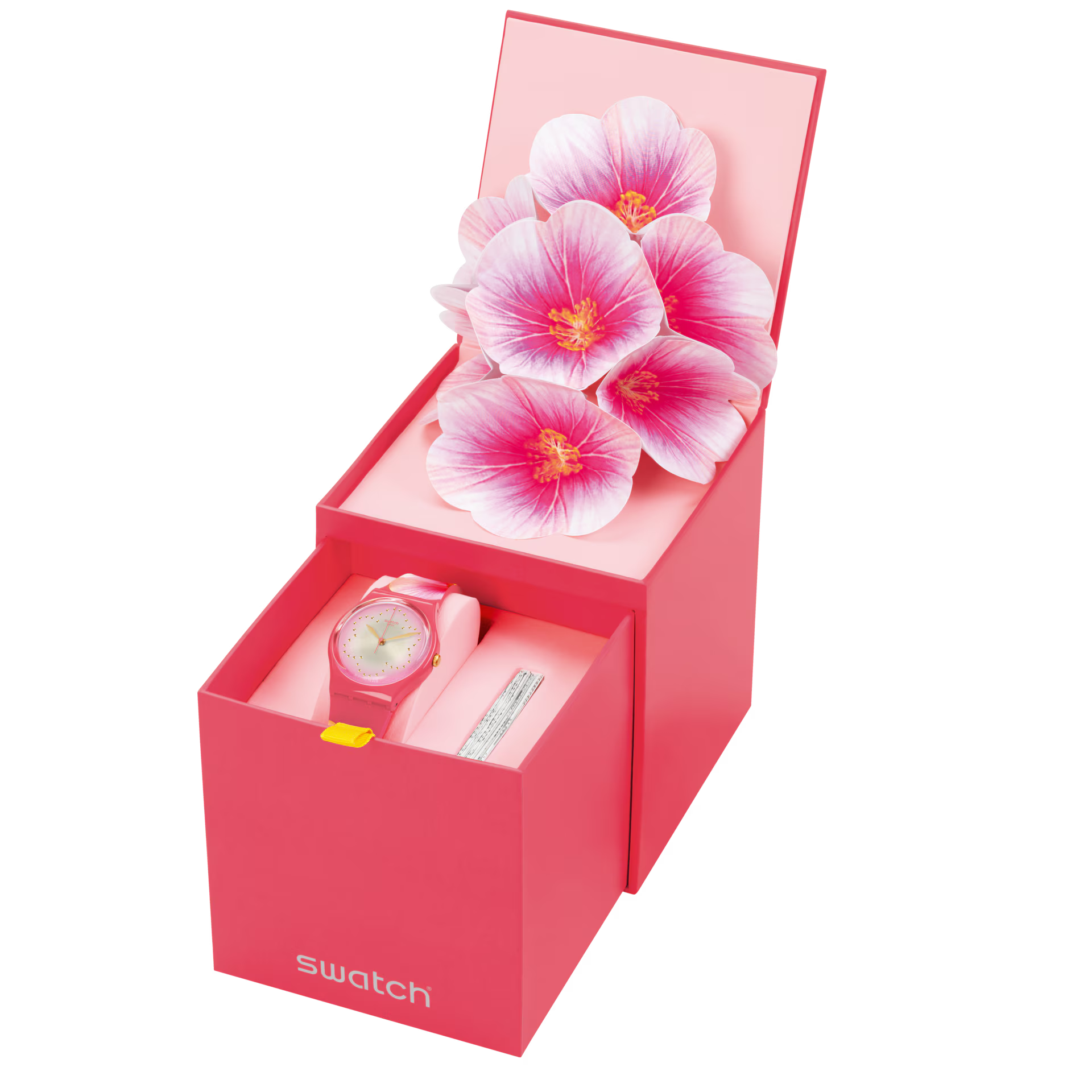 Модель Swatch FIORE DI MAGGIO (GZ321) — это кварцевые часы для женщин с корпусом 34 мм, выполненные в розовых тонах, с кварцевым механизмом, акриловым стеклом, водонепроницаемостью 30 метров и специальной упаковкой, символизирующей весеннюю тематику, благодаря ярким цветам, напоминающим майские цветы.