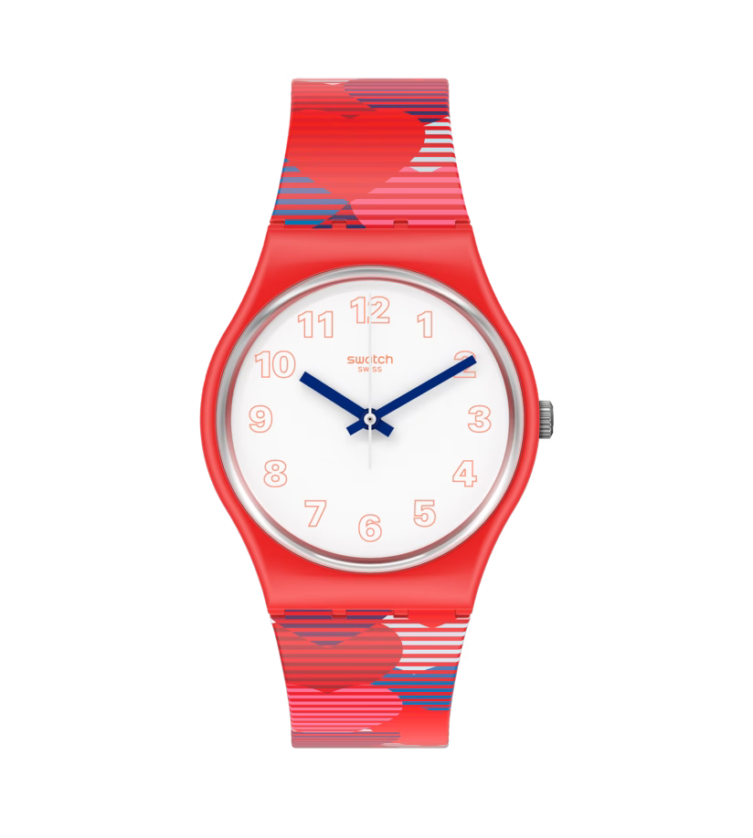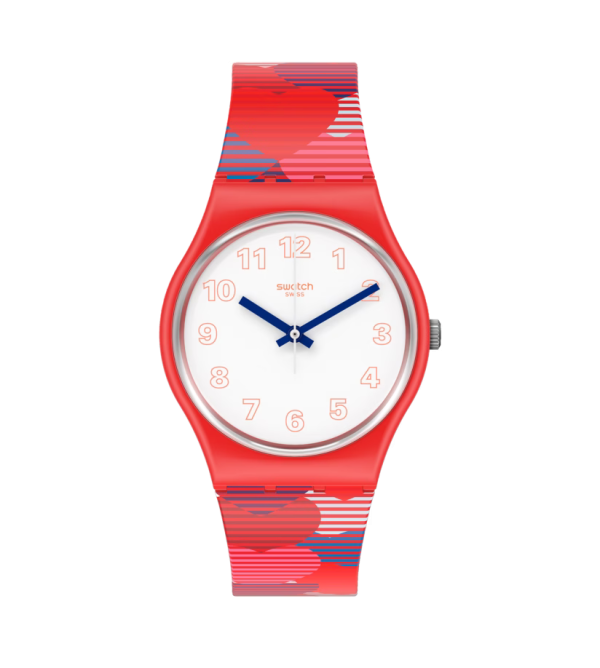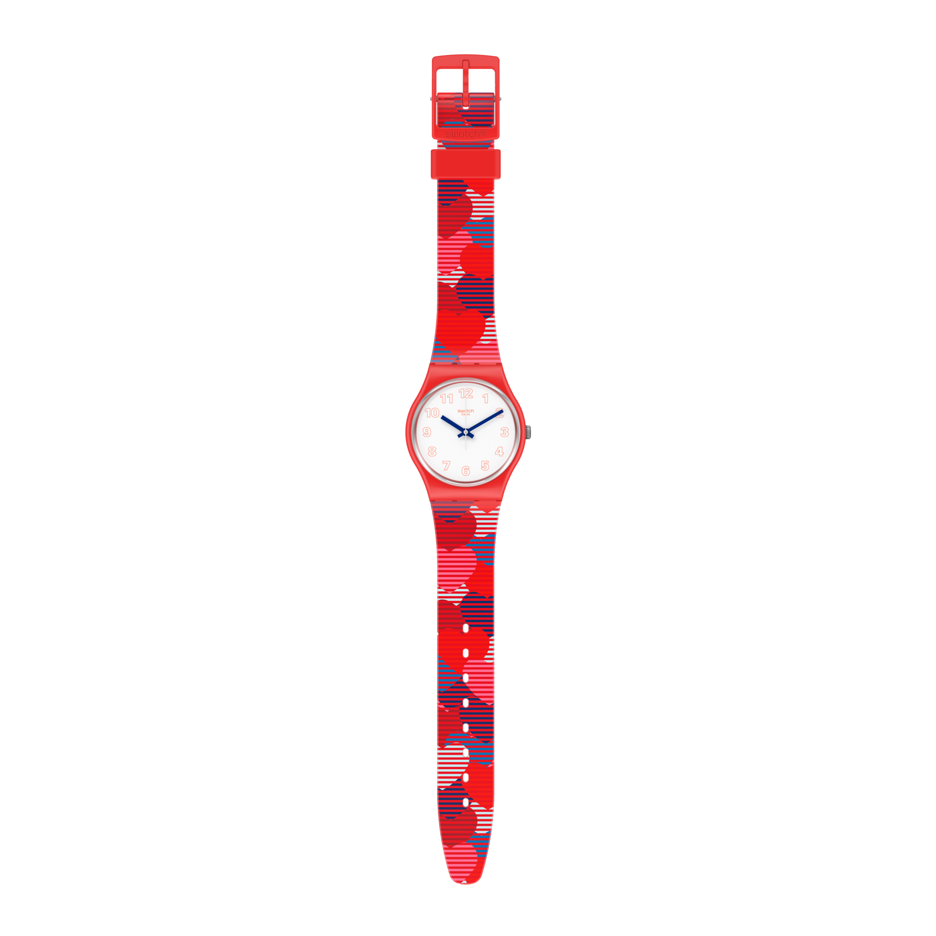 HEART LOTS (GR182) имеет достаточно сердец, чтобы согреть любовью весь мир. Матовый красный ремешок пересекает узор из полосатых сердец и готов для всех влюбленных, везде и каждый день.