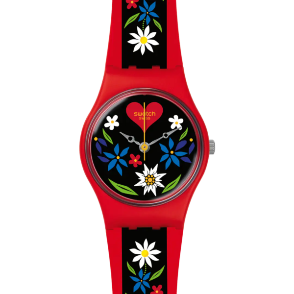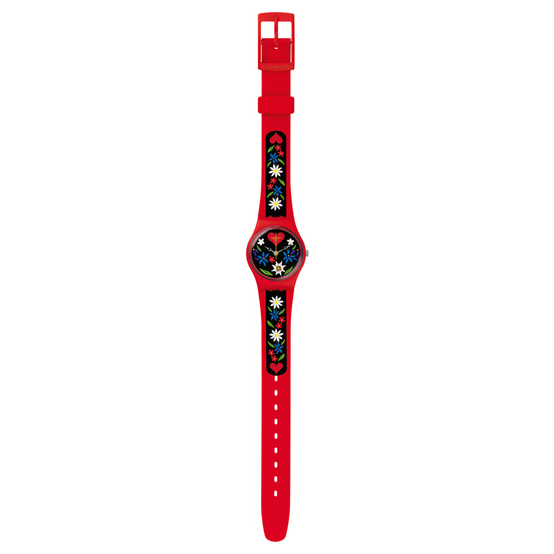 Завоевывая сердца и умы, модель ROETLI (LR129) представляет собой буйство красного цвета. Цвет любви создает фон для циферблата с цветочным и сердечным принтом, который продолжается на красном силиконовом ремешке.