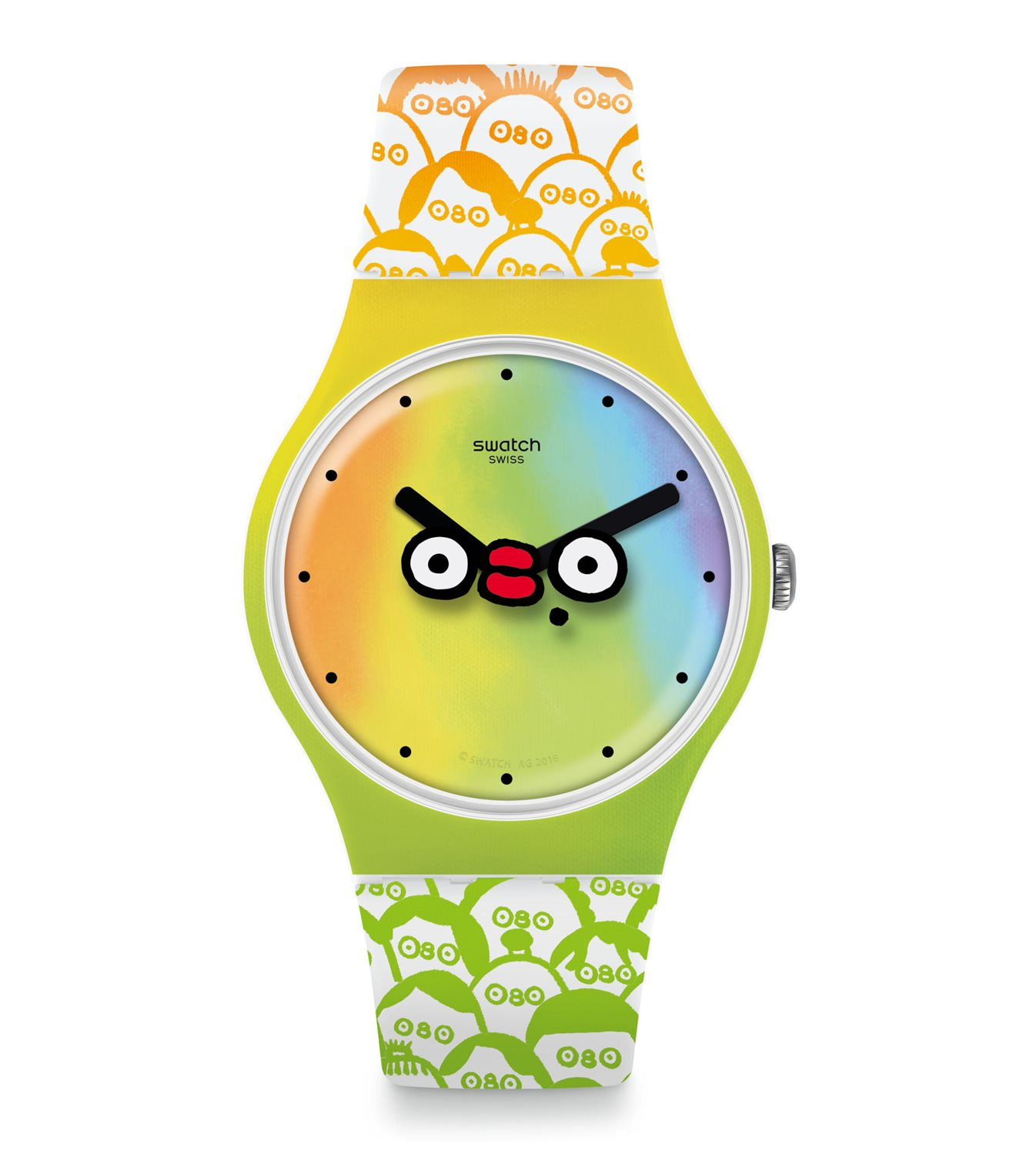 Яркие, игривые и эксклюзивные часы Swatch SUOZ303 "WHAT'S YO FACE?" – это специальное издание Swatch Club 2019 года, созданное в сотрудничестве с художницей Тон Мак (Ton Mak), автором знаменитых персонажей Flabjacks. Модель из коллекции New Gent отличается дерзким и радостным дизайном: зеленый пластиковый корпус (Ø 41 мм) обрамляет многоцветный радужный циферблат с забавным нарисованным лицом, а белый силиконовый ремешок украшен россыпью пухлых, милых и разноцветных фигурок. Оснащенные надежным кварцевым механизмом и водонепроницаемостью 3 Bar, эти часы – идеальный выбор для тех, кто ценит уникальность, коллекционный дизайн и хочет добавить в свой образ яркий акцент и немного беззаботного настроения.