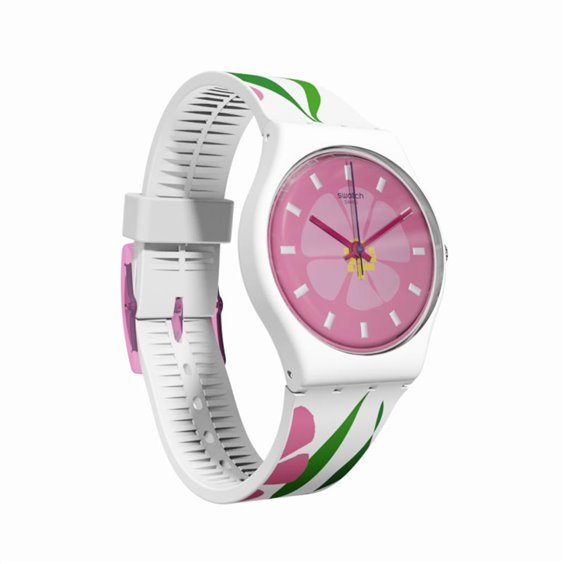 Swatch Primevere (GZ304) — это квинтэссенция весенней свежести, входящая в специальную серию с уникальным коллекционным оформлением. Внутри установлен надежный швейцарский кварцевый механизм, а мягкий силиконовый ремешок небесного оттенка обеспечивает идеальную посадку на руке. Главной изюминкой издания является его эксклюзивная упаковка, стилизованная под рожок нежного мороженого, что превращает покупку часов в настоящий праздник и делает их готовым, эффектным подарком. Продуманный дизайн дополнен контрастными розовыми стрелками и фирменной системой легкой замены батарейки, сочетая в себе эстетику арт-объекта и функциональность швейцарского прибора.