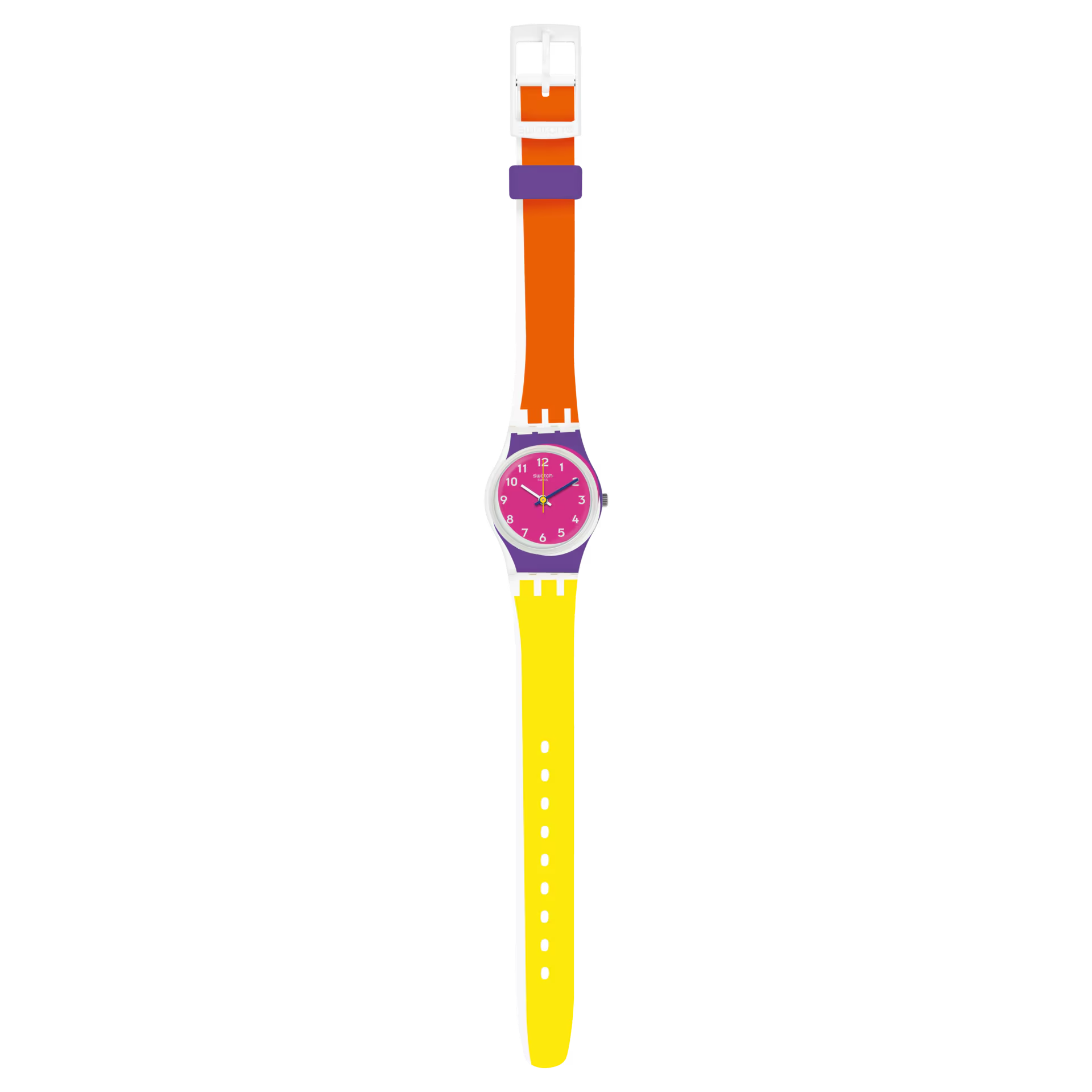 Вот и солнце! Яркие оранжевые и желтые ремешки характеризуют модель SUN THROUGH (LW165), которая имеет слегка смещенный дизайн и ярко-розовый циферблат.