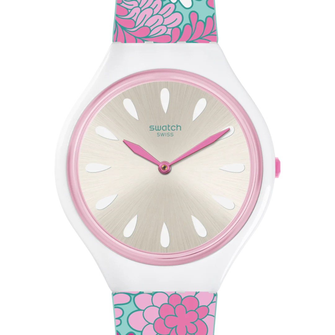 SKINPIVOINE — это модель наручных часов, которая относится к ультратонкой серии Skin известного швейцарского бренда Swatch. Они отличаются изящным и минималистичным дизайном: корпус часов имеет диаметр около 34 мм, а толщина составляет всего несколько миллиметров, что делает их очень лёгкими и комфортными для повседневного ношения. Модель, как правило, выполнена в нейтральных, часто золотистых или розово-золотистых тонах, с простым циферблатом и изысканным ремешком, что подчёркивает элегантность и невесомость аксессуара.