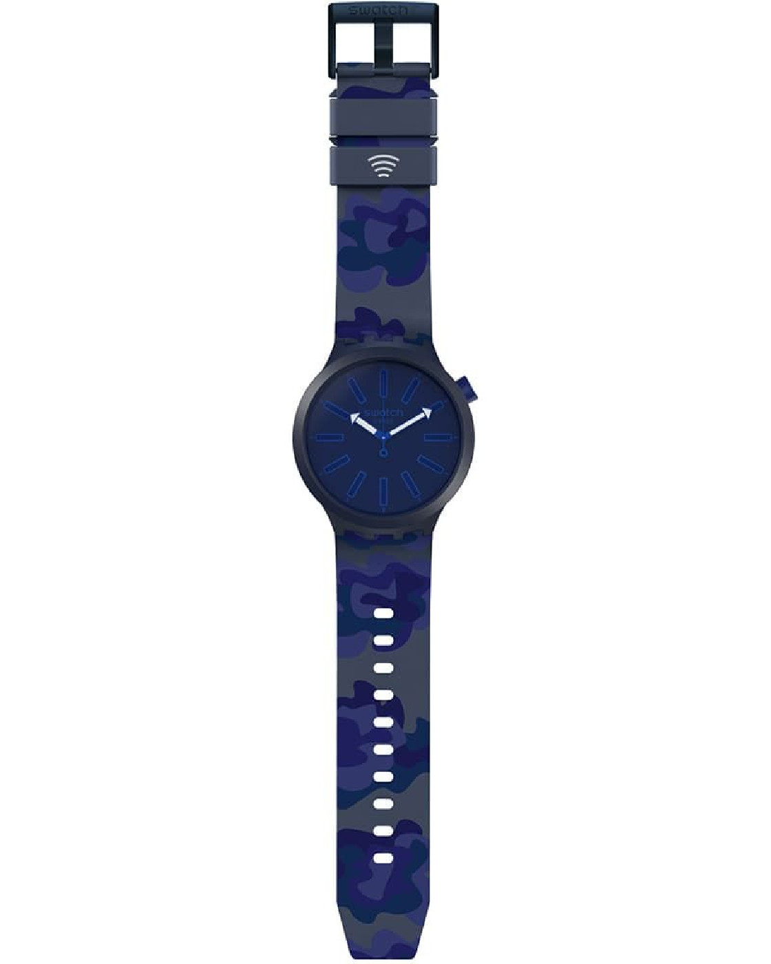 Потрясающие часы BIG BOLD SwatchPAY! демонстрируют разнообразие оттенков синего как на циферблате, так и на матовом полимерном корпусе. Матово-синий силиконовый ремешок с разноцветным принтом выделяется за счет эффекта Anodamazing.
