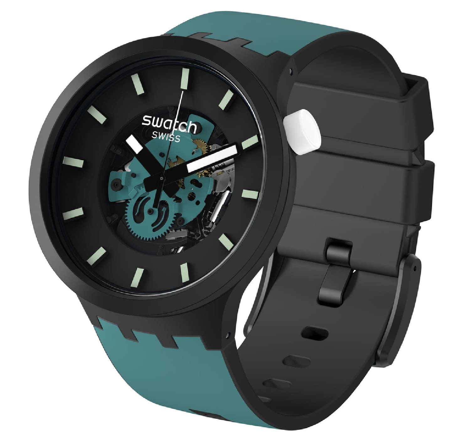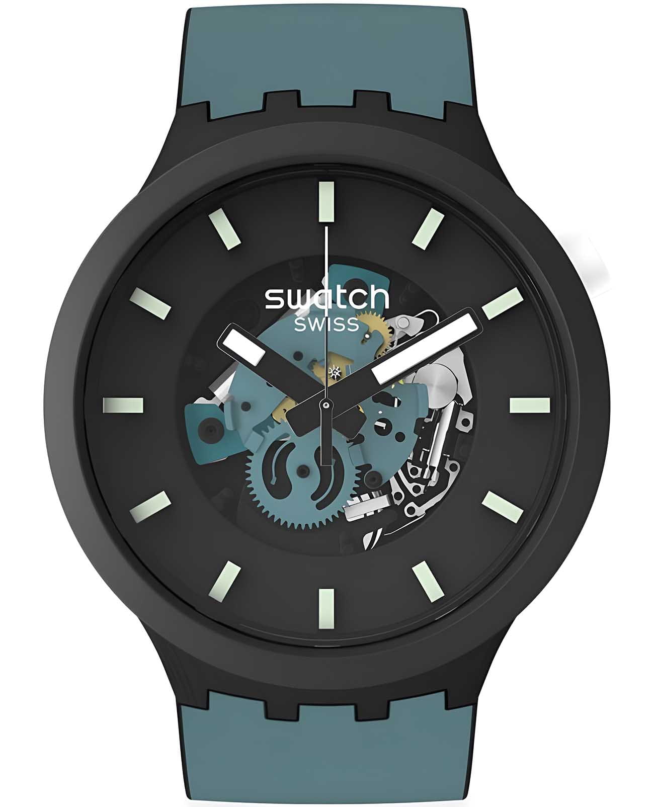 Центральным элементом этих часов BIG BOLD BIOCERAMIC является большой циферблат с вырезанным циферблатом с 3D-эффектом и принтом на индексах, покрытый стеклом биологического происхождения. Матовый черный цвет на безеле и корпусе BIOCERAMIC, а также силиконовые петли подчеркивают темно-синий принт на силиконовом ремешке этих часов большого размера.