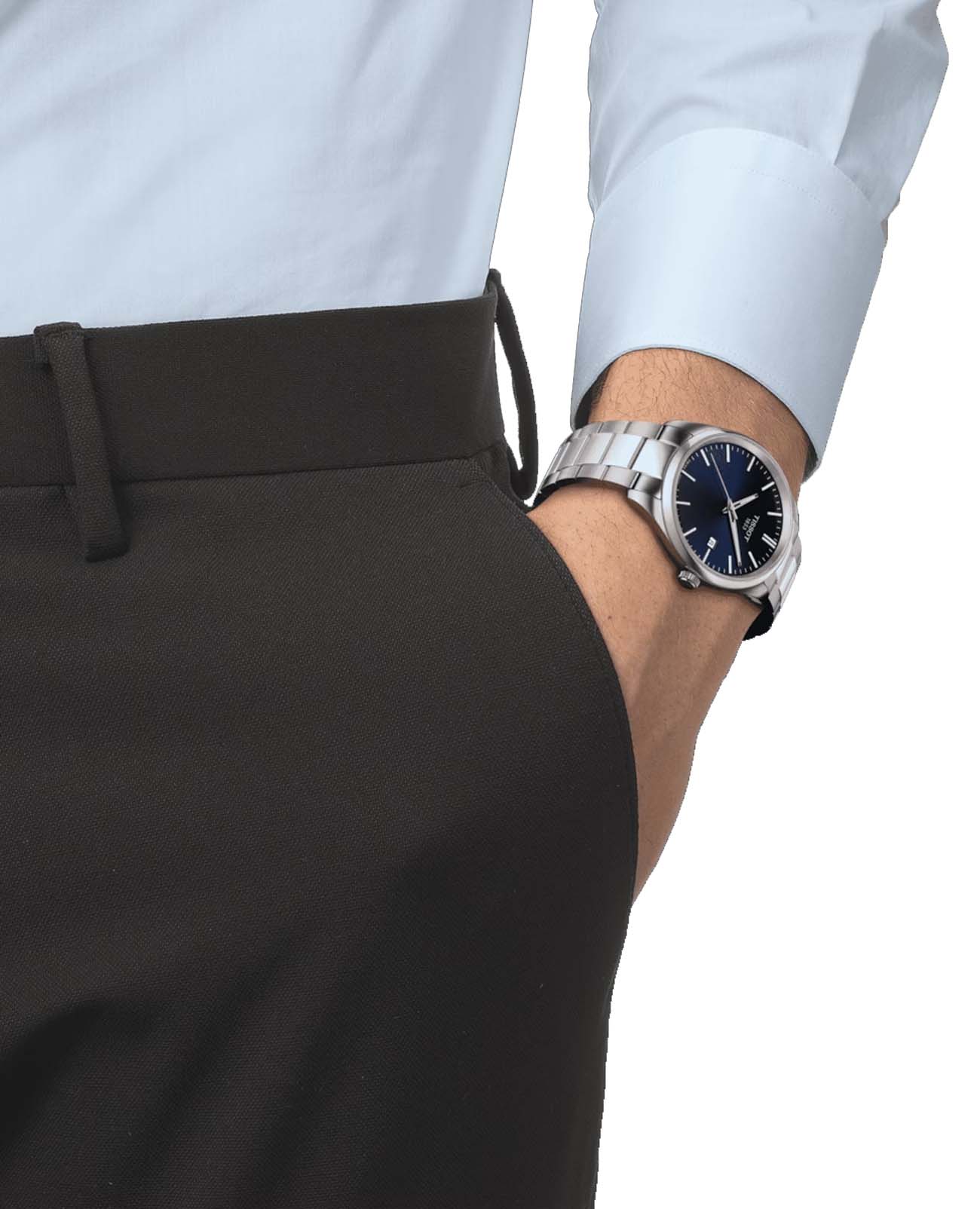 Бестселлер Tissot PR 100 остается верным своему названию: точный (P), прочный (R) и водонепроницаемый до давления 10 бар (100 м). Изготовленный из нержавеющей стали 316L, этот новый дизайн предлагает большой циферблат благодаря узкому безелю, что придает ему элегантный, минималистичный вид. Время отображается стрелками с покрытием SuperLuminova®, что позволяет точно считывать показания даже в темноте. Эта модель Tissot PR 100 Quartz имеет 40-миллиметровый корпус из нержавеющей стали 316L. Циферблат хорошо защищен под устойчивым к царапинам сапфировым стеклом. Браслет, также из нержавеющей стали 316L, имеет систему быстрой смены, позволяющую легко заменить его без использования инструментов.