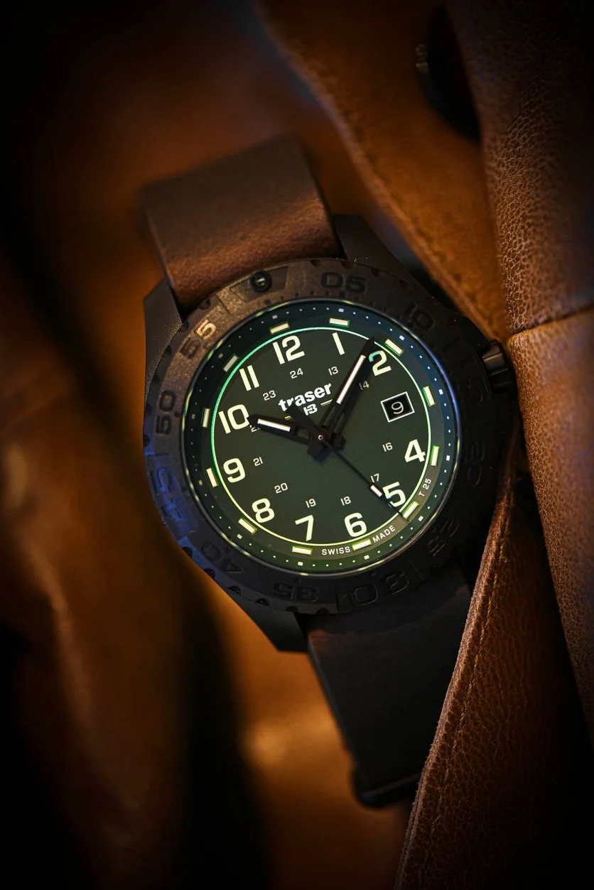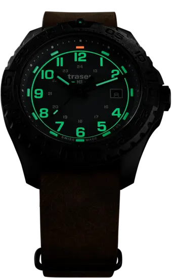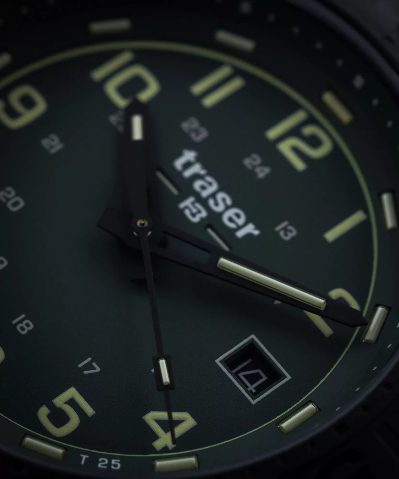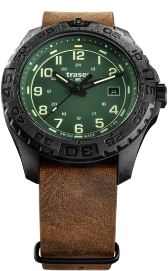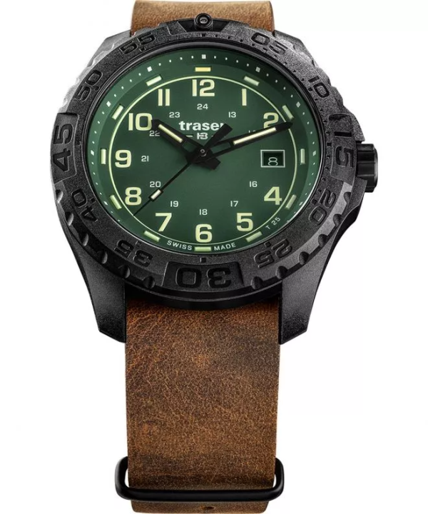 Traser P96 OdP Evolution Green 109038 — мужские тактические часы для тех, кто не делает скидок на условия. Сверхлёгкий корпус из стеклонаполненного полимера диаметром 44 мм сочетает минимальный вес с исключительной прочностью, а швейцарский кварцевый механизм гарантирует точность хода в любой обстановке. Главная особенность модели — фирменная технология подсветки Trigalight с автономными тритиевыми трубками, которые обеспечивают идеальную читаемость циферблата ночью и в условиях плохой видимости без какой-либо подзарядки. Сапфировое стекло с антибликовым покрытием защищает циферблат от царапин, а зелёный циферблат с подсветкой Trigalight и LumiBright делает часы одинаково функциональными и днём, и в полной темноте. Водозащита 20 атм и ремешок NATO шириной 22 мм завершают образ настоящего инструмента для активных мужчин. Swiss Made, гарантия производителя.